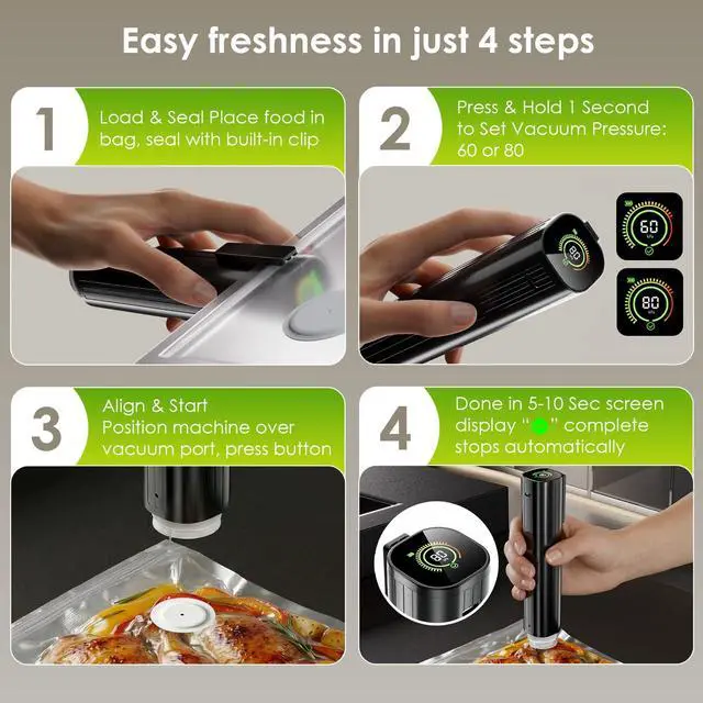 10-Second Sealing, Zero Hassle One-button operation automatically shuts off when airtight seal is achieved - faster than brewing your morning coffee.