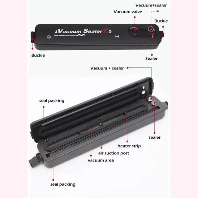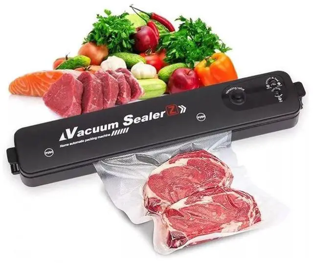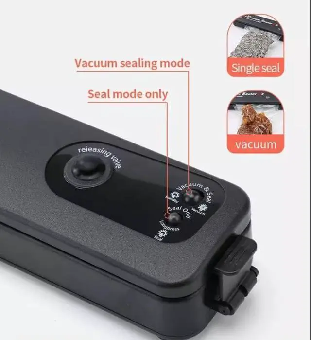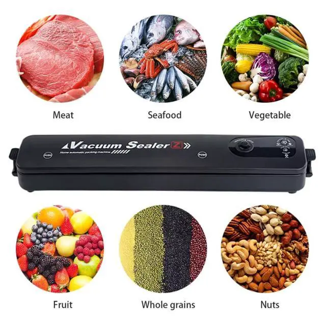 Keep your food fresher for longer with our Powerful Vacuum Sealer Machine, designed for convenience, speed, and efficiency in every kitchen. This compact food preservation system helps reduce food waste and save money by extending the shelf life of your groceries, whether it's meat, vegetables, fruits, or even leftovers. With one-touch automatic operation, this easy-to-use vacuum sealer is perfect for both beginners and seasoned home chefs. Simply place the bag, press the button, and enjoy a fast and quiet seal in just 15 seconds. while the included 10 vacuum sealer bags give you everything you need to get started right away. Designed for dry, moist, wet, and cold food modes, this small household plastic sealing machine adapts to all types of food storage needs. Whether you're meal prepping, marinating, or freezing, this machine ensures maximum freshness with minimal effort. Finished in sleek black, the space-saving, compact design fits effortlessly on any kitchen counter without clutter. Ideal for sous vide cooking, long-term freezer storage, or daily fridge use.