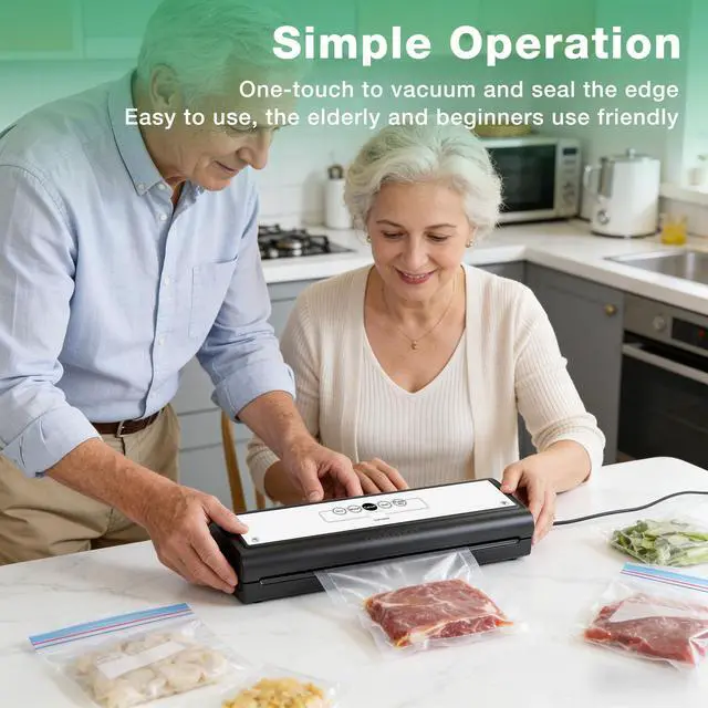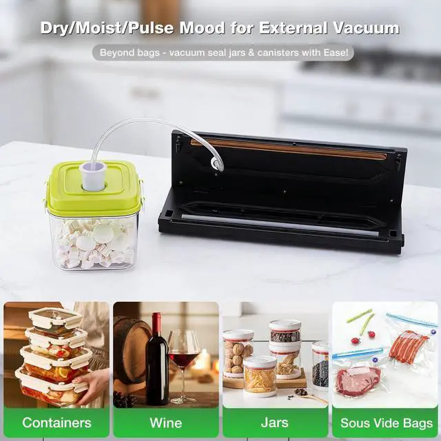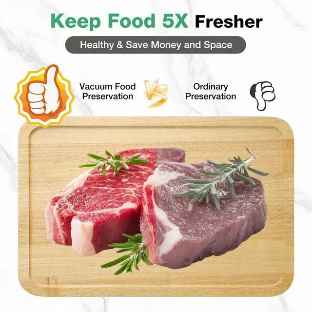 Vacuum pump with 55Kpa strong suction quickly removes air, extending food freshness up to 5 times longer and locking in flavor