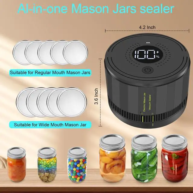 MULTIFUNCTIONAL DESIGN: The Mason jar vacuum sealer comes equipped with caps designed for both wide mouth and regular mouth mason jars, along with various accessories, making it a versatile vacuum sealing kit for all your food preservation needs