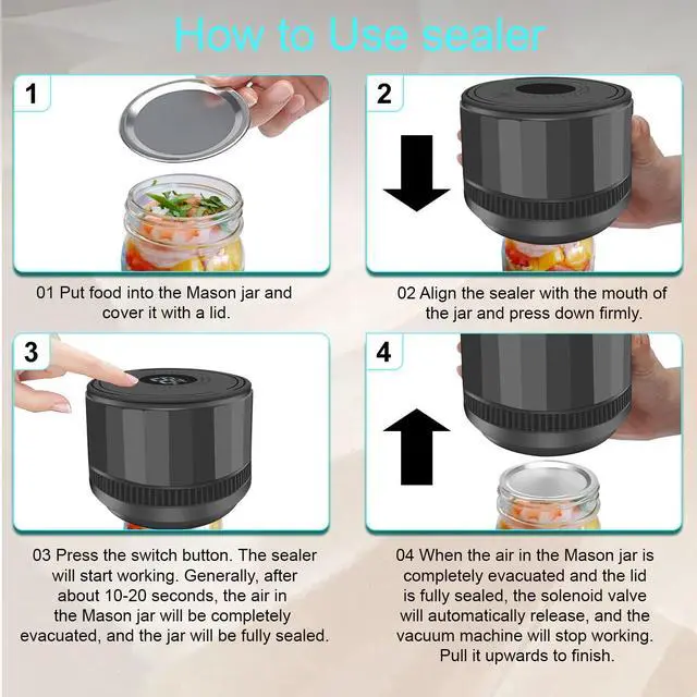 LONG-LASTING FOOD STORAGE: This innovative jar sealer for mason jars effectively maintains the nutritional value and flavor of your food, allowing you to enjoy your favorite items long after sealing and preventing spoilage