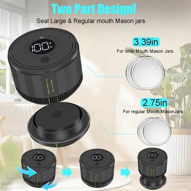 POWERFUL PERFORMANCE: Featuring an upgraded electric motor, this electric mason jar sealer delivers strong suction capabilities to ensure an airtight seal, effectively preserving food freshness and reducing waste
