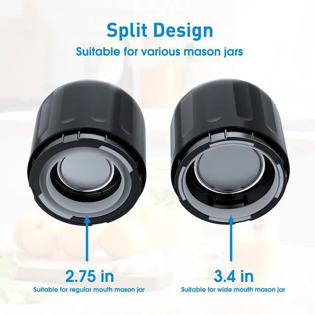 EVERYTHING YOU NEED IN ONE KITIncludes 5 wide mouth lids + 5 regular mouth lids, a jar opener, and USB cable. High-quality lids and sealing rings provide better performance and long-lasting durability, making it a perfect pantry or gift solution.