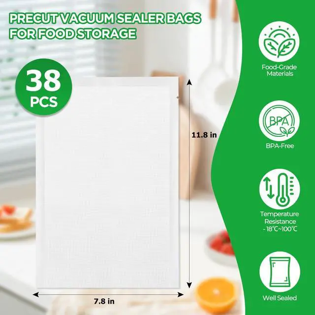 Vacuum Sealer Bags, 38 PCS 7.8" × 11.8" Textured Vacuum Sealing Bags, Commercial Grade, BPA Free, Heavy Duty, Great for Food Storage Meal Prep or Sous Vide Cooking