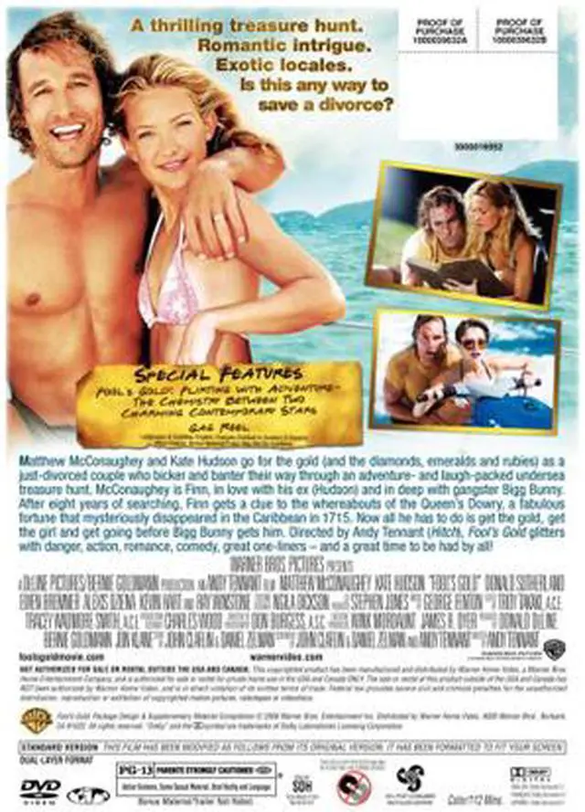 | Synopsis | Matthew McConaughey and Kate Hudson go for the gold (and the diamonds, emeralds and rubies) as a just-divorced couple who bicker and banter their way through an adventure- and laugh-packed undersea treasure hunt. McConaughey is Finn, in love with his ex (Hudson) and in deep with gangster Bigg Bunny. After eight years of searching, Finn gets a clue to the whereabouts of the Queen’s Dowry, a fabulous fortune that mysteriously disappeared in the Caribbean in 1715. Now all he has to do is get the gold, get the girl and get going before Bigg Bunny gets him. Directed by Andy Tennant (Hitch), Fool’s Gold glitters with danger, action, romance, comedy, great one-liners – and a great time to be had by all! |