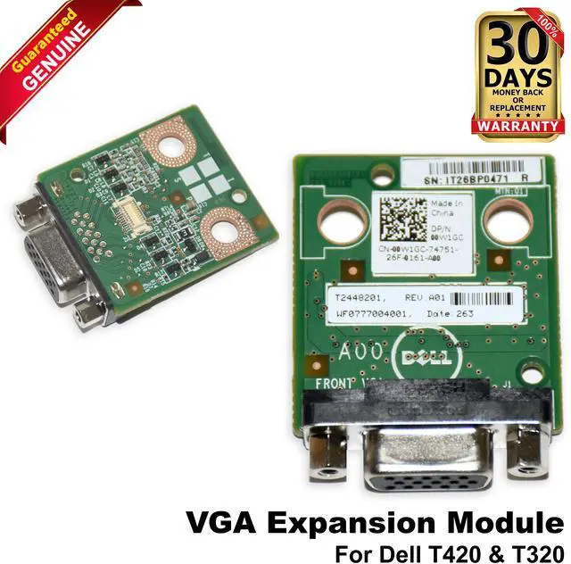The Dell 0W1GC VGA Expansion Module adds essential video output functionality to Dell PowerEdge T420 and T320 servers. Designed for seamless integration, this OEM module ensures reliable VGA connectivity for administration and monitoring in enterprise server environments.