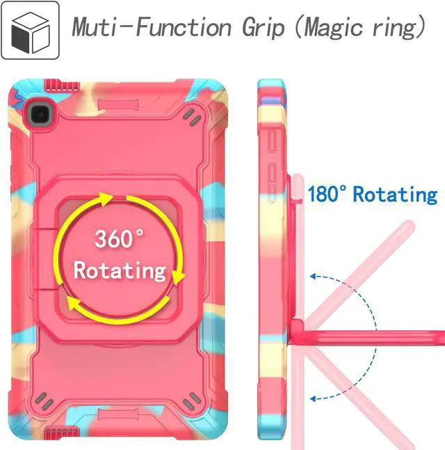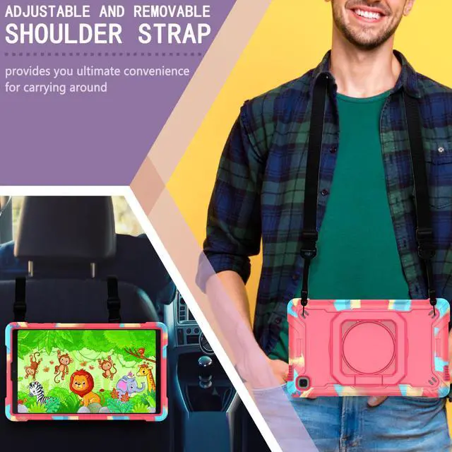 Multi-Function Features: 360°rotating grip can be used as a handle, easy to hang your tablet in kitchen, washroom, bedroom; Kickstand is stable enough to stand on different surfaces for children to view. And with an adjustable shoulder strap, it is convenient for you to carry and hang everywhere.