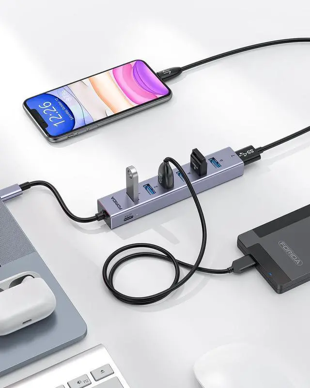 Sure. FORIDA USB C to USB Hub with 7 ports data transfer and one 15W charging port for itself. Made of Aluminum Alloy.