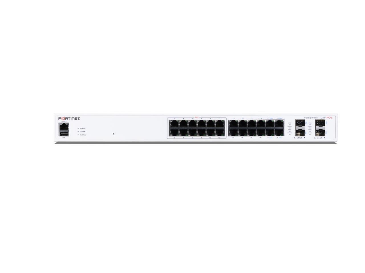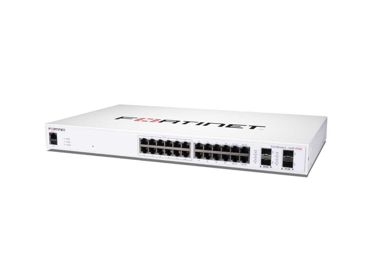 Fortinet FortiSwitch-124F-POE Layer 2 FortiGate switch controller compatible PoE+ switch with 24 GE RJ45 + 4 10G SFP+ ports, 12 port PoE | FS-124F-POE