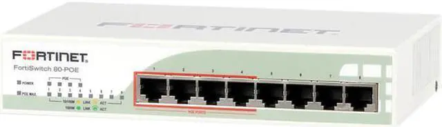 Fortinet FS-80-POE - Fortinet FortiSwitch-80-POE 8 port 10/100/1000 IEEE802.3af PoE switch with ability to source 62 Watts of dedicated PoE Power shared on 4 ports