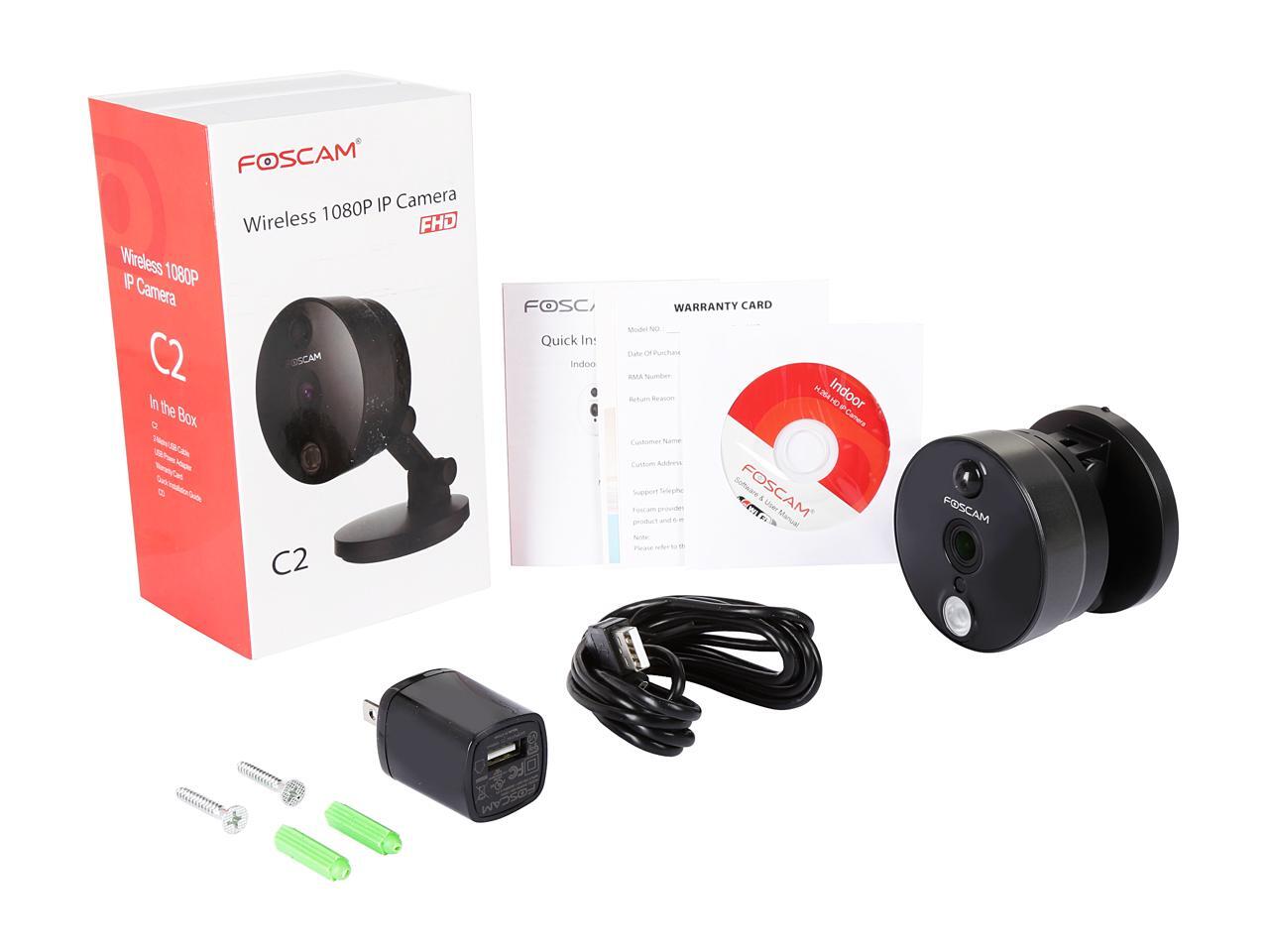 Foscam C2B Indoor FHD 1080P Wireless Plug and Play IP Camera, with IR-Cut, Night Vision, 120 degree Super Wide Viewing Angle, PIR Detection, Rich Media Message Push (Black)