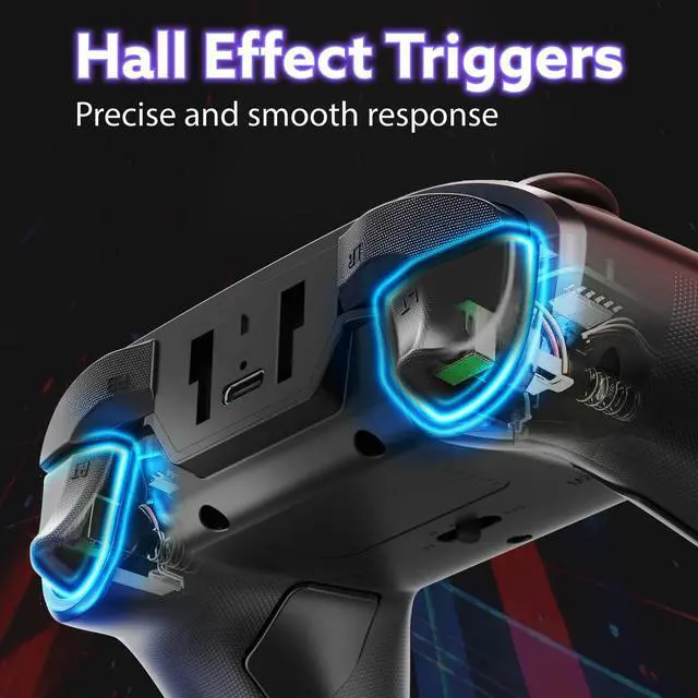 2.4G Wireless PC Controller with Hall Effect Triggers, 2 Programmable Buttons For Switch 2/1/Lite/OLED/Windows PC/Steam Deck/Android/iOS, Bluetooth Gaming Pro Controller, Black