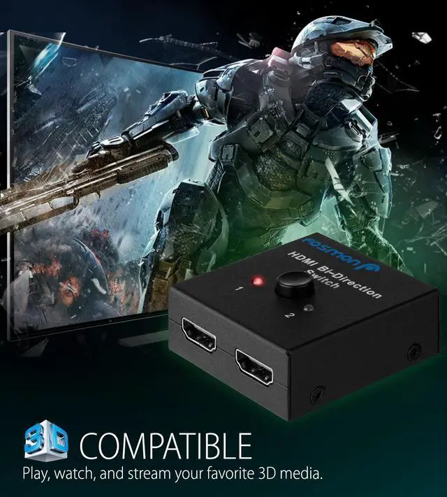 2 Input 1 Output or 1 Input 2 OutputFosmon HDMI Switch with Bi-Directional function and HDCP Passthrough allows you to connect two high-definition HDMI sources like Blu-ray or PS4 to a single HDMI display. It also allows you to output single high-definition source to two displays.