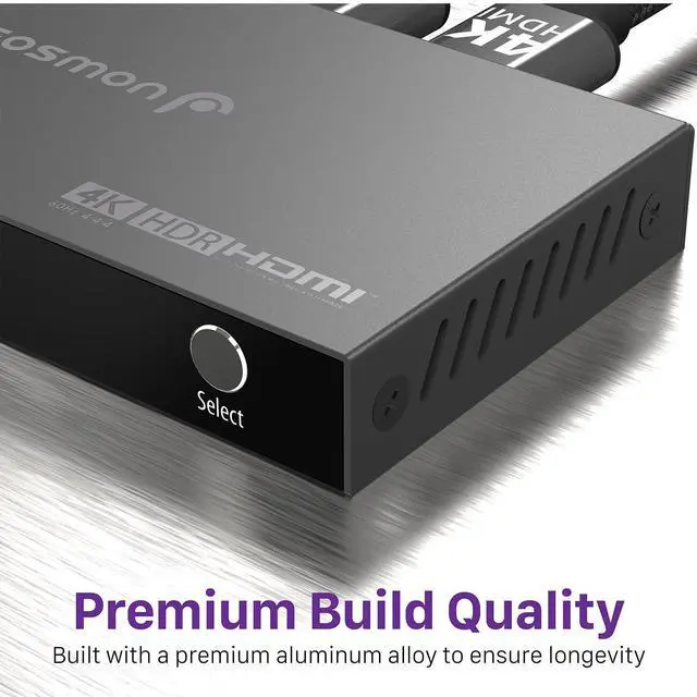 Efficient Power and ReliabilityEnjoy seamless work, gaming, video streaming and audio between three HDMI sources with a single display. The included micro-USB power cable ensures stable power and connectivity. Use a 5V USB power adapter (not included) with the micro-USB cable for the best results. Keep your HDMI cables connected to the switch less than 5 meters (16.40 feet) each for optimal 4K@60Hz quality.