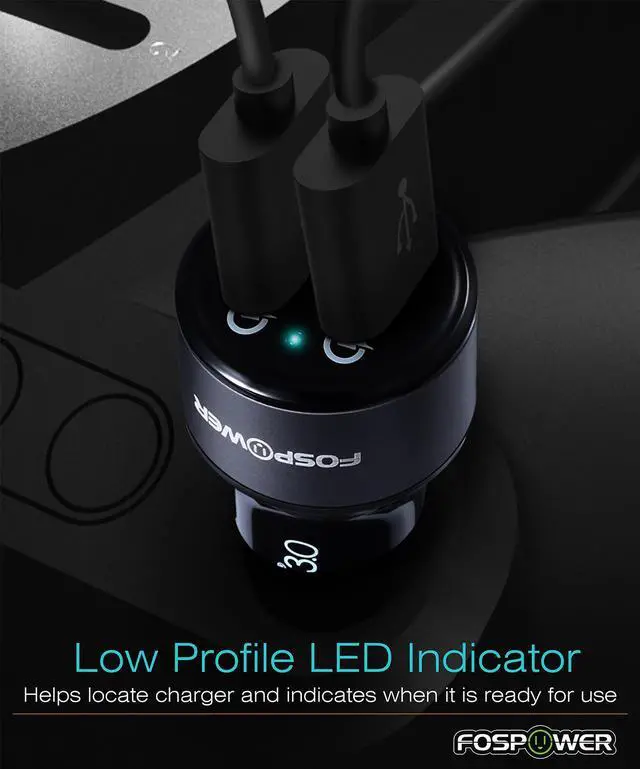 Low-profile LED IndicatorBuilt with high-quality materials FosPower's 2-Port USB car charger also has a built-in low-profile LED indicator, designed to indicate a ready-to-use connection.