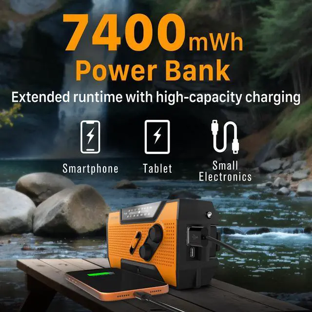 FosPower Emergency Radio & 7400mWh Portable Power Bank