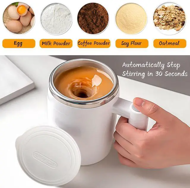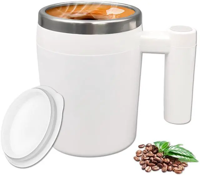 Just press the button to activate the automatic magnetic stirring system in this self stirring coffee mug. It mixes coffee, tea, hot chocolate, milk, or protein shakes evenly and quickly—no manual stirring needed.
