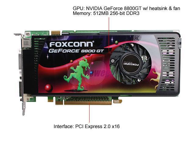 Foxconn GeForce 8800 GT DirectX 10 8800GT-512OC660/1940 512MB 256-Bit GDDR3 PCI Express 2.0 x16 HDCP Ready SLI Support Video Card
