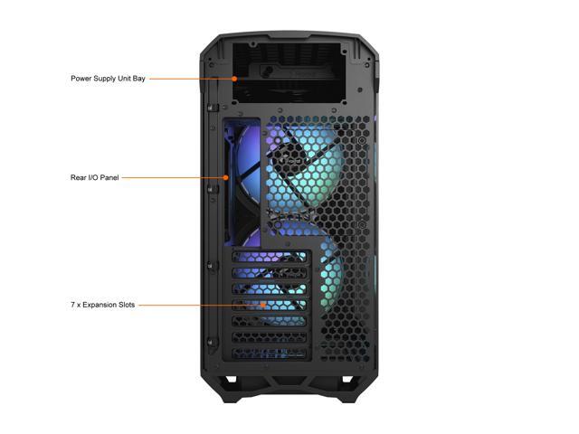 - Top mounted aerodynamic PSU shroud with integrated ARGB