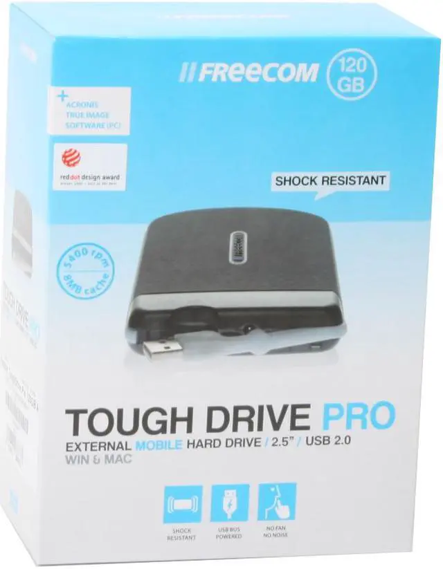 What's the point of having a portable external hard drive if you have to worry about it all the time? Freecom said that's not the way to live and introduced the ToughDrive. This 120GB drive has the capacity to store all your important files with room to spare, and it is designed to work in the real world.