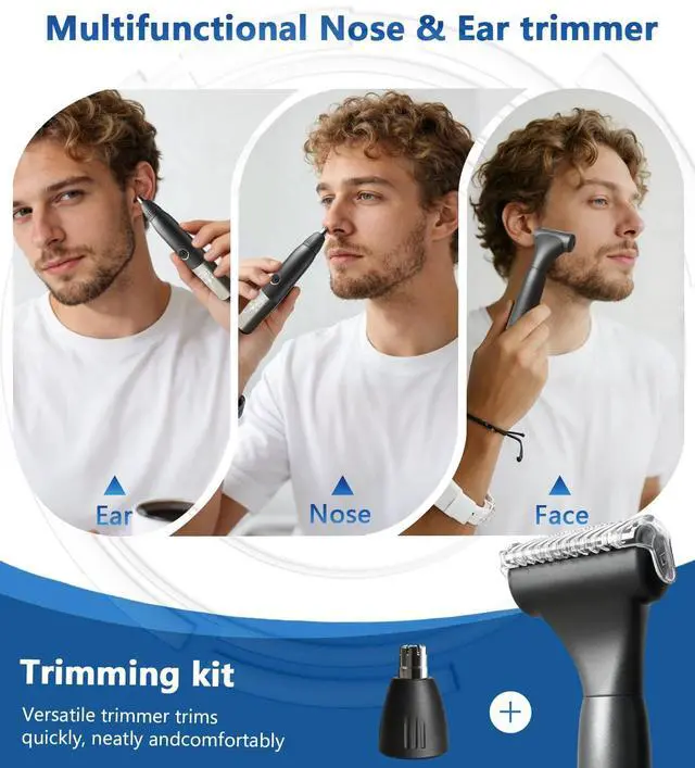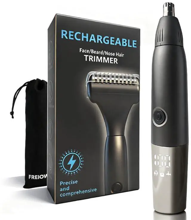 This ear and nose hair trimmer for men features a premium stainless steel dual-blade design for precise, pain-free trimming.