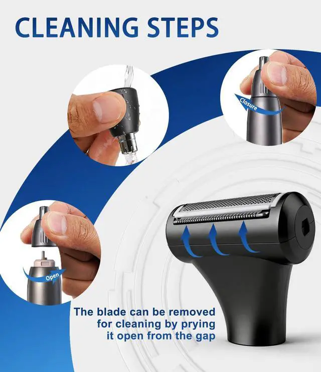 This nose and ear hair trimmer for men features a waterproof design, allowing you to use it in the shower and rinse it directly under running water.