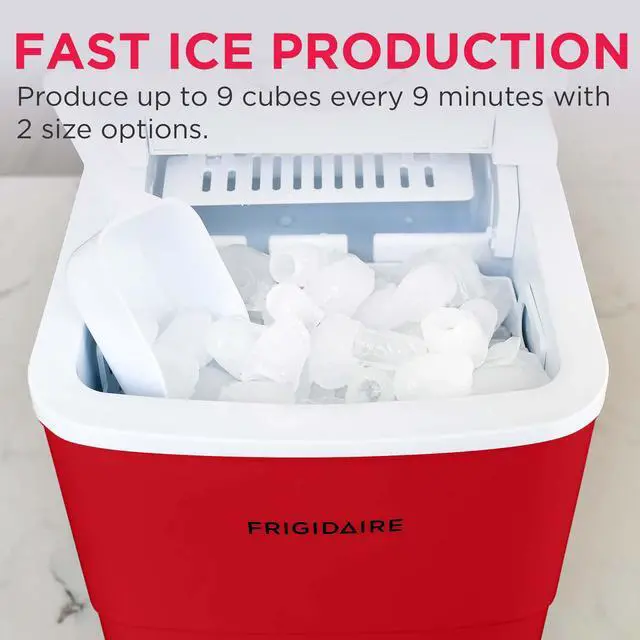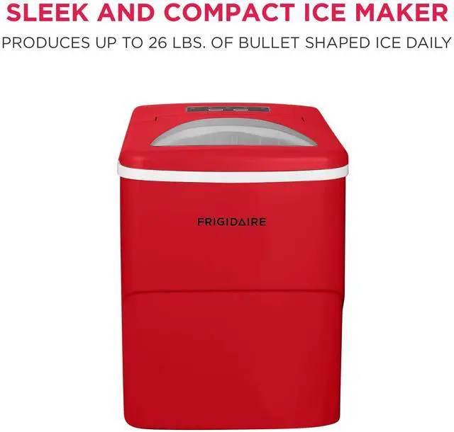 • Sleek Design - Never run out of ice again with the Frigidaire Ice Maker that produces up to 26 lbs. of ice per day. Elevate your space with its sleek countertop design that blends seamlessly with any kitchen, bar, office, or dorm.