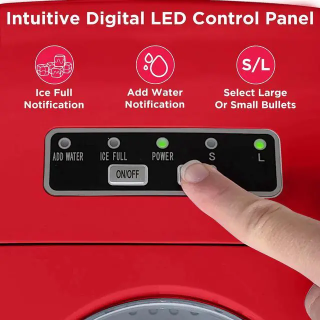 • Intuitive Control - The ice maker features a transparent window so you can easily monitor ice levels and see when ice is being made. Take full control with the digital LED control panel, allowing easy adjustment of settings and ice size selection for ultimate convenience.