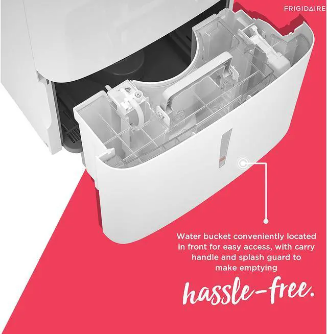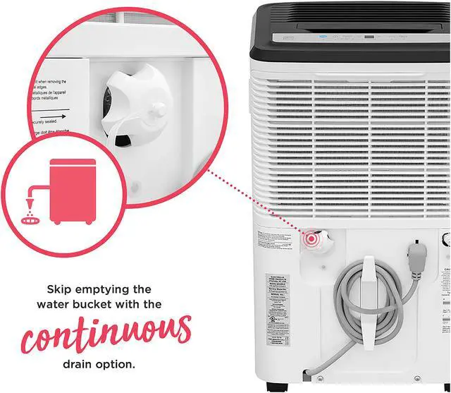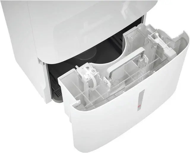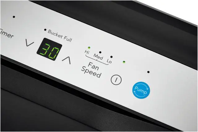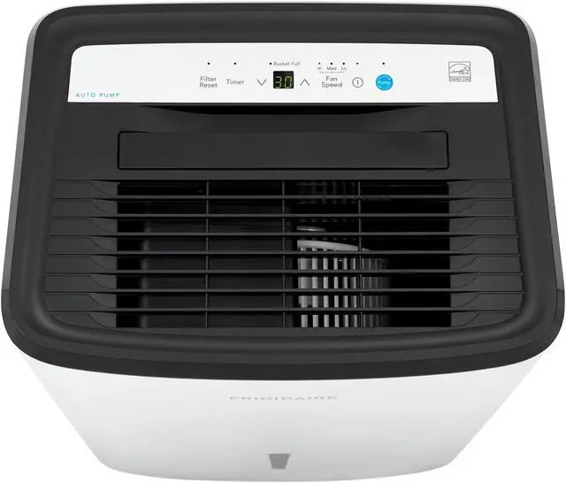 | Features | Easy-to-Clean Washable Filter Capture dust from the air and keep your dehumidifier working efficiently with our easy-to-clean washable filter. Custom Humidity Control Maximize your comfort with customized control over the amount of humidity in your room. Built-In Pump Save time and energy normally spent manually emptying a water bucket! The built-in pump allows the unit to discharge moisture in an upward direction, either into a sink or out of a window. Continuous Drain Option Skip emptying the water bucket - this unit continuously drains your dehumidifier so that you don't have to lift a finger. Automatic Shut Off Unit shuts off automatically when the water bucket is full. Front Loading Bucket with Carrying Handle and Splash Guard A water bucket is conveniently located in the front of the unit for easy access, while the carry handle and splash guard make emptying your bucket hassle-free. Portable Design Easily move from room to room with caster wheels and side handles, dehumidifying your room when and where you need it. Low Temperature Operation This unit is designed to operate at low temperatures down to 41°F. Multi-Speed Fan Enjoy more cooling flexibility with three different fan speeds. ENERGY STAR Certified Use less energy, reduce your energy usage and ultimately lower your utility bills. |