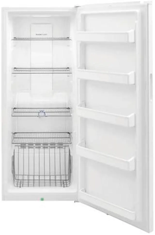 | Features | Power Outage Assurance Keep food frozen for two days if there is a power outage with our superior tight seal that locks in cold air. EvenTemp Cooling System Our EvenTemp cooling system constantly circulates cold air throughout the freezer with smart sensing technology that adjusts air flow to maintain a uniform temperature. Flexible Interior Organization System Easily organize your family's frozen favorites with our four adjustable, metallic wire shelves, deep bottom basket, and five spacious door bins that allow you to make the most of every available square inch of your freezer. Door Ajar and High Temp Alarm Monitor the ideal environment for your frozen foods with our audible temperature alarm that alerts you if the door is left open or the freezer's temperature rises. Frost-Free Design Never waste time chipping away ice in your freezer again with our frost-free design that does the work for you. Floor-Projected Power-On Indicator Know at a glance that your freezer is keeping your favorites safely frozen and fresh with our power-on indicator light. Garage Ready Place this unit in your garage without worry. This unit is designed to perform in temperatures ranging from 0°F to 110°F. |