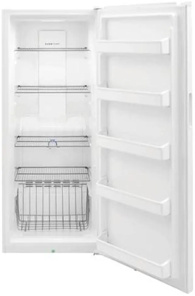 | Features | Power Outage Assurance Keep food frozen for two days if there is a power outage with our superior tight seal that locks in cold air. EvenTemp Cooling System Our EvenTemp cooling system constantly circulates cold air throughout the freezer with smart sensing technology that adjusts air flow to maintain a uniform temperature. Flexible Interior Organization System Easily organize your family's frozen favorites with our four adjustable, metallic wire shelves, deep bottom basket, and five spacious door bins that allow you to make the most of every available square inch of your freezer. Door Ajar and High Temp Alarm Monitor the ideal environment for your frozen foods with our audible temperature alarm that alerts you if the door is left open or the freezer's temperature rises. Frost-Free Design Never waste time chipping away ice in your freezer again with our frost-free design that does the work for you. Floor-Projected Power-On Indicator Know at a glance that your freezer is keeping your favorites safely frozen and fresh with our power-on indicator light. Garage Ready Place this unit in your garage without worry. This unit is designed to perform in temperatures ranging from 0°F to 110°F. |