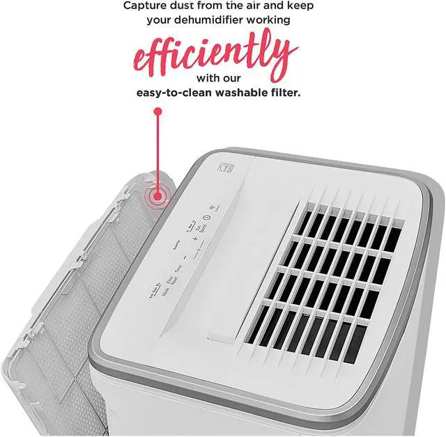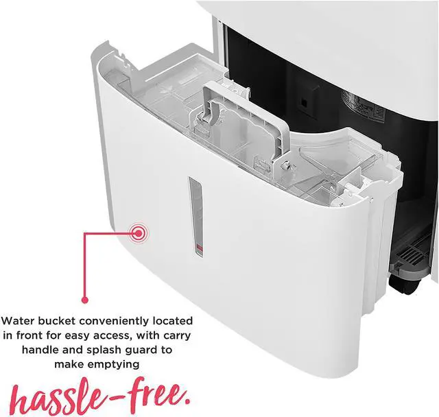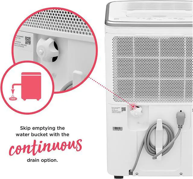 | Features | Wi-Fi Connected with The Frigidaire App Dehumidify your room anywhere, anytime from your smart device with the Frigidaire app. At your convenience, remotely turn the unit on or off, change humidity levels, control modes, create custom schedules, and adapt fan speeds. Clean Air Ionizer Reduce airborne particles to improve your comfort with a built-in air ionizer. Easy-to-Clean Washable Filter Capture dust from the air and keep your dehumidifier working efficiently with our easy-to-clean washable filter. Works with Amazon Alexa & The Google Assistant Turn your unit on and off, set a temperature, and raise and lower the temperature by simply speaking to Amazon Alexa or Google Assistant. Custom Humidity Control Maximize your comfort with customized control over the amount of humidity in your room. Quick Glance Light Keep your dehumidifier removing moisture at its best with glowing color indicator lights used to communicate system performance and desired actions, such as filter check reminders. Continuous Drain Option Skip emptying the water bucket - this unit continuously drains your dehumidifier so that you don't have to lift a finger. Automatic Shut Off Unit shuts off automatically when the water bucket is full. Front Loading Bucket with Carrying Handle and Splash Guard A water bucket is conveniently located in the front of the unit for easy access, while the carry handle and splash guard make emptying your bucket hassle-free. Portable Design Easily move from room to room with caster wheels and side handles, dehumidifying your room when and where you need it. Low Temperature Operation This unit is designed to operate at low temperatures down to 41°F. Multi-Speed Fan Enjoy more cooling flexibility with three different fan speeds. ENERGY STAR Certified Use less energy, reduce your energy usage and ultimately lower your utility bills. Child Lock Locks user interface to prevent accidental setting changes. |