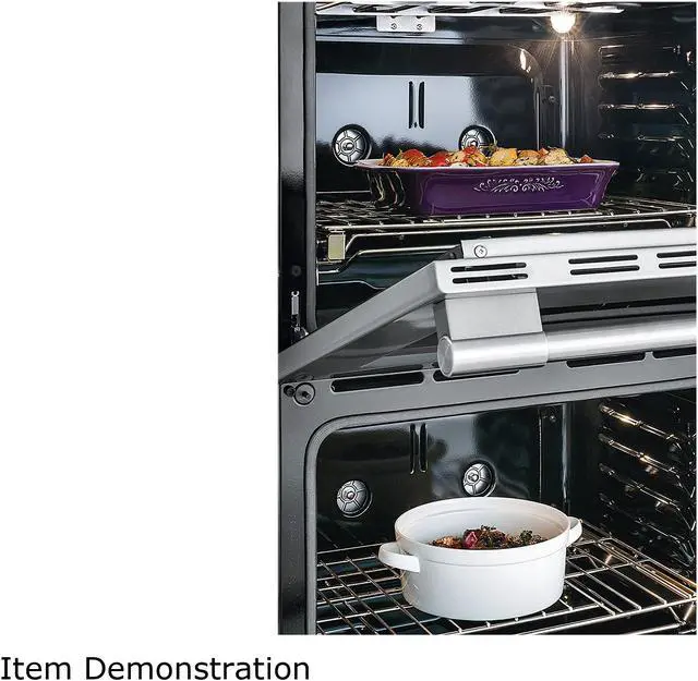 | Oven Detail | Lower Oven Interior Height: 18.63" Lower Oven Interior Width: 24.13" Lower Oven Interior Depth: 19.50" Upper Oven Interior Height: 18.63" Upper Oven Interior Width: 24.13" Upper Oven Interior Depth: 19.50" Bake Element: 4,000 Watts Bake Element Pass: 8 Bake Element Type: Hidden Bake System: Yes Broil Element: 4,000 Watts Broil Element Pass: 8 Broil System: Yes Convection Type: Total Number of Rack Positions: 6 Oven Interior Color: Midnight Black Oven Light Quantity: 2 Oven Light Type: Halogen Oven Light Watts: 25 Watts Rack Position Type: Nickel Ladder Rack Type 1: Glide Rack Type 1 Quantity: 1 Rack Type 2: Handle Rack Type 2 Quantity: 2 Rack Type 3 Quantity: 1 Window Type: Large |