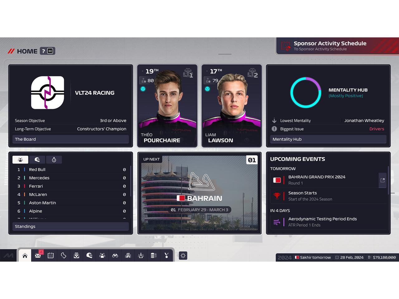 Take your place on the F1 pitwall and manage every element of one of 10 official teams or create your very own team for the first time in the series and lead them to glory.