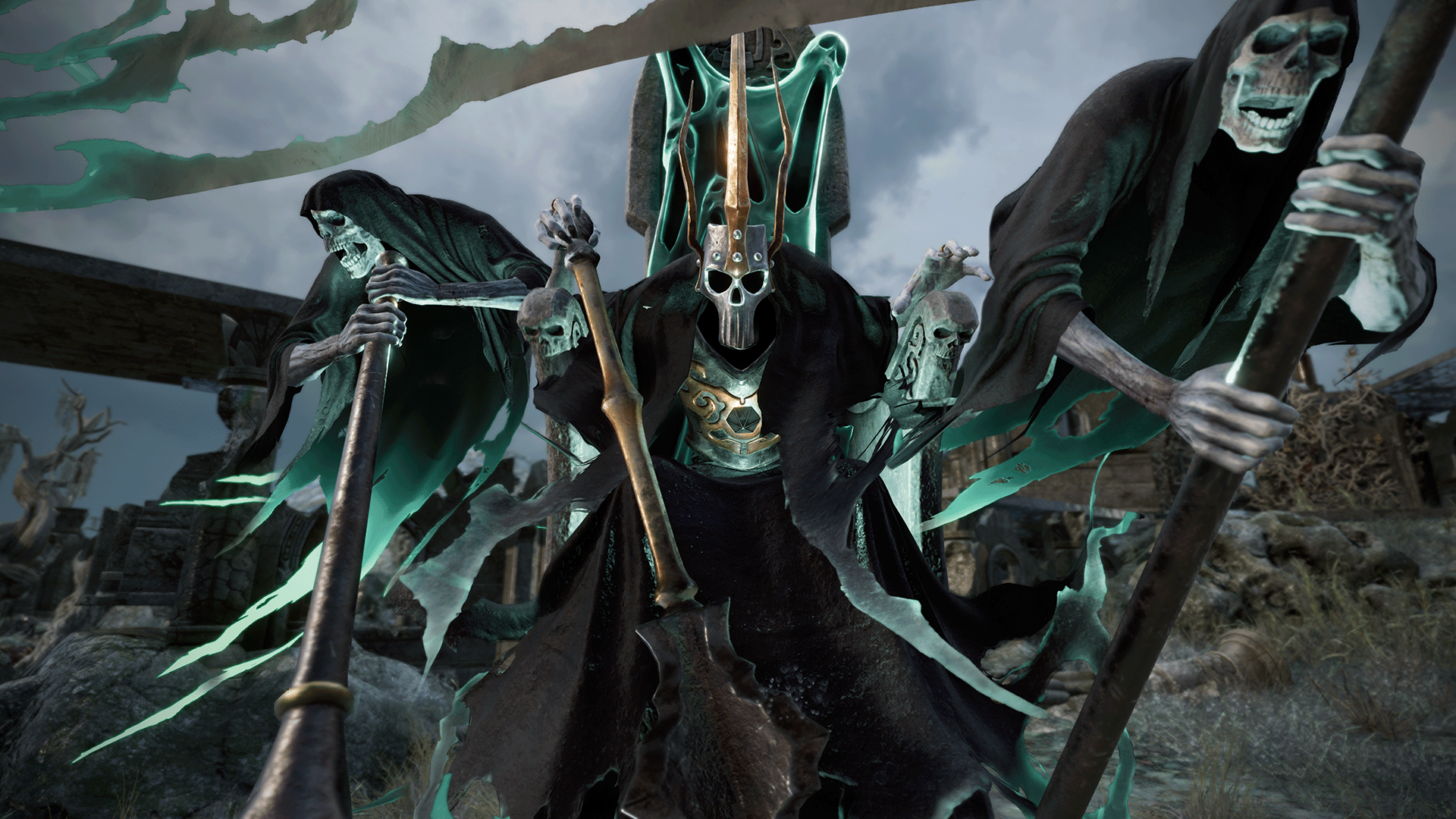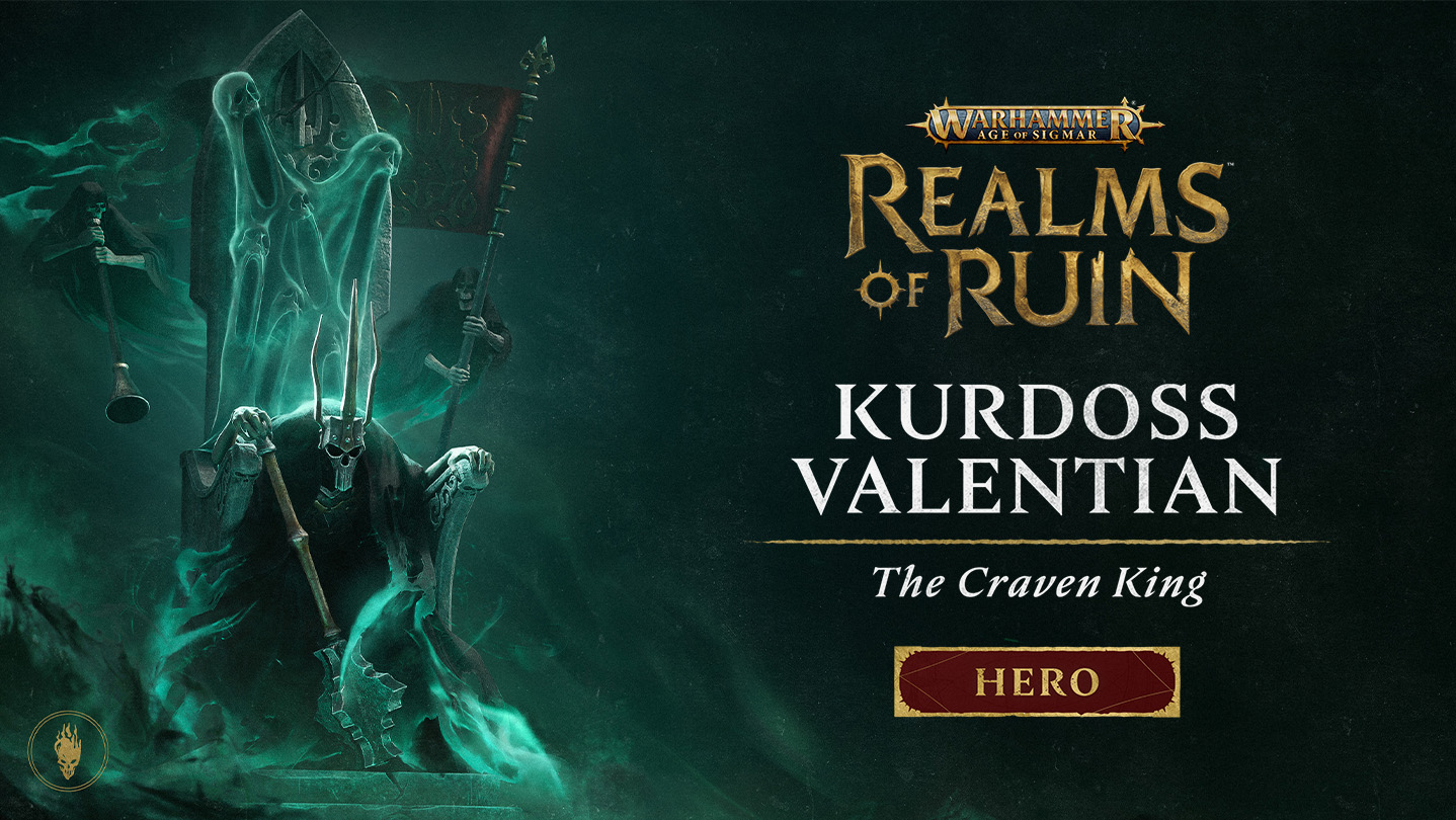 Kurdoss Valentian, The Craven King Pack introduces a new playable hero to Warhammer Age of Sigmar: Realms of Ruin for Conquest Mode and Multiplayer Mode, bolstering the Nighthaunt.The cold fury of Kurdoss Valentian is matched only by his bitterness. Cursed to sit upon a throne but never rule, the Craven King vents his anger by mercilessly smiting those who earn Lady Olynder’s ire. The Craven King sits silent and motionless upon his drifting throne until he closes with the enemy, and then he wields the Sepulchral Sceptre to deadly effect. A slow moving, powerful melee hero, Kurdoss can influence outcomes on the battlefield with his disruptive abilities, silencing foes, and leading the charge with devastating melee attacks.