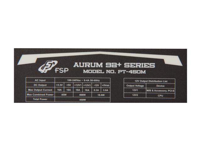FSP Group AURUM 92+ Series PT-450M 450W ATX12V / EPS12V SLI Ready CrossFire Ready 80 PLUS PLATINUM Certified Modular Active PFC Power Supply