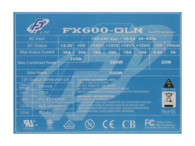 FSP Group FX600-GLN 600W ATX V2.2/EPS12V SLI Certified CrossFire Ready Active PFC Power Supply