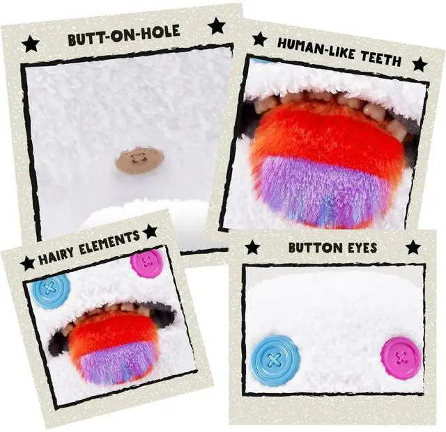 This Zuru Fugglers plush features Oogah Boogah from the Hairy Fuggs collection with exaggerated character styling and signature ugly cute details. The 9 inch size delivers a bold display presence while remaining easy to place on beds shelves or couches. Soft plush construction is paired with a fuzzy textured finish and an oversized rainbow tongue for standout visual appeal. Button eyes and uneven teeth emphasize Oogah Boogahs wild mischievous personality. A standout collectible for fans of weird plush toys and the Fugglers universe.