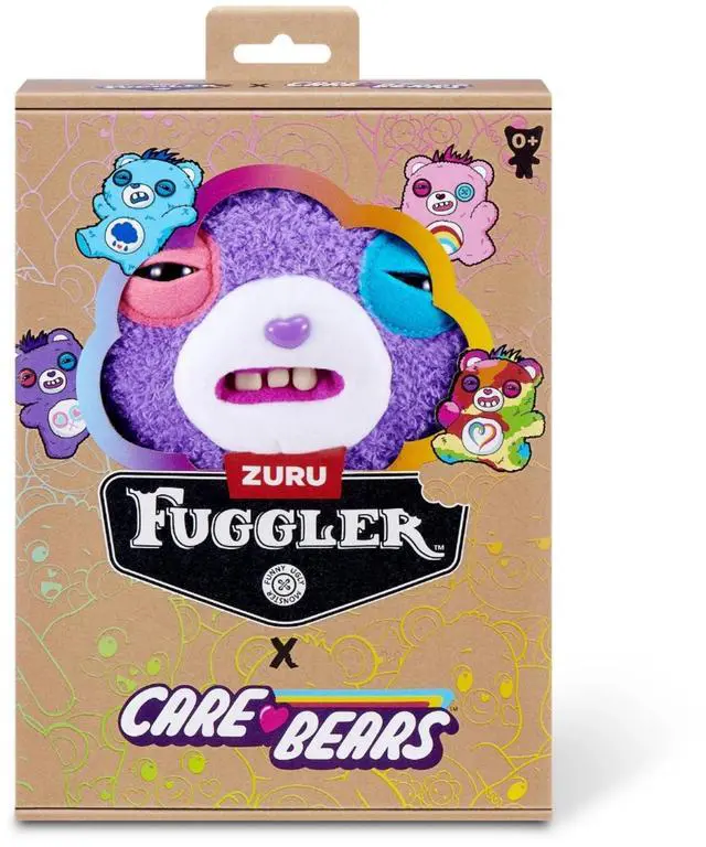 This Zuru Fuggler plush gives Share Bear a delightfully twisted makeover with the brands signature funny-ugly style. Featuring mismatched eyes, quirky teeth, and a soft purple plush body, it blends classic Care Bears charm with mischievous Fuggler attitude. The iconic Share Bear belly badge is reimagined with bold, playful detail. Designed for fans who love offbeat collectibles, this plush stands out from traditional stuffed animals. A unique piece that adds personality to any Care Bears or Fuggler collection.