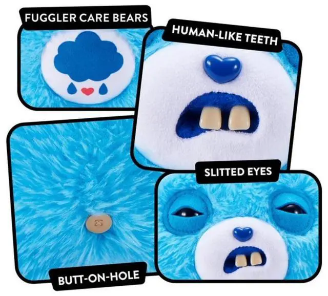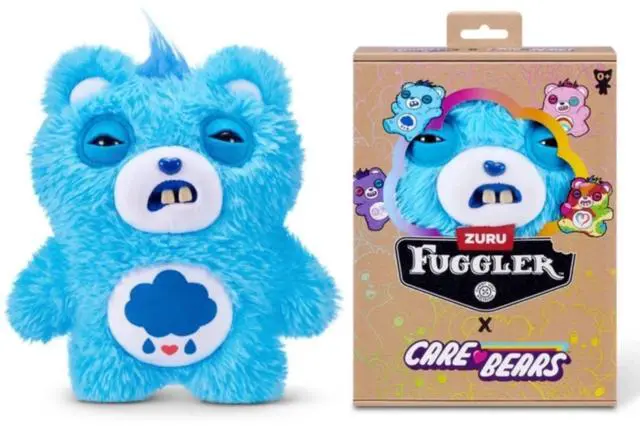This Zuru Fugglers plush puts a mischievous twist on the classic Care Bears character, Grumpy Bear. Featuring signature Fuggler details with an expressive face and quirky teeth, this plush blends cute and creepy charm. The soft blue plush body makes it fun to display or collect. Designed for fans who love offbeat characters, it stands out from traditional plush toys. A unique addition to any Care Bears or Fuggler collection.
