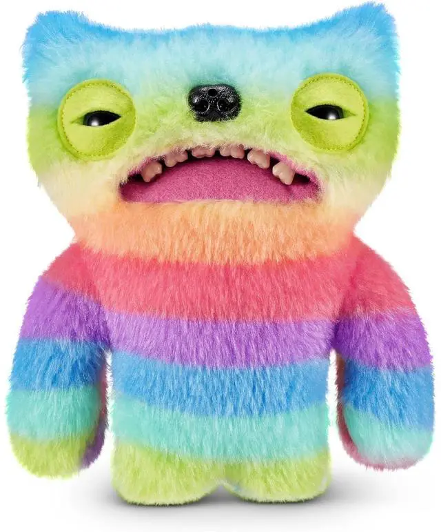 This Zuru Fuggler Fart Face Wide Eyed Weirdo plush delivers maximum chaos with a bold funny ugly monster design. Standing approximately 9 inches tall, the plush features wild rainbow fur, wide mismatched eyes, and crooked teeth for instant shock value. The exaggerated facial expression gives it a truly unhinged look that stands out in any plush lineup. Soft plush construction makes it suitable for display or light play. A standout collectible for fans of bizarre characters and classic Fuggler attitude.