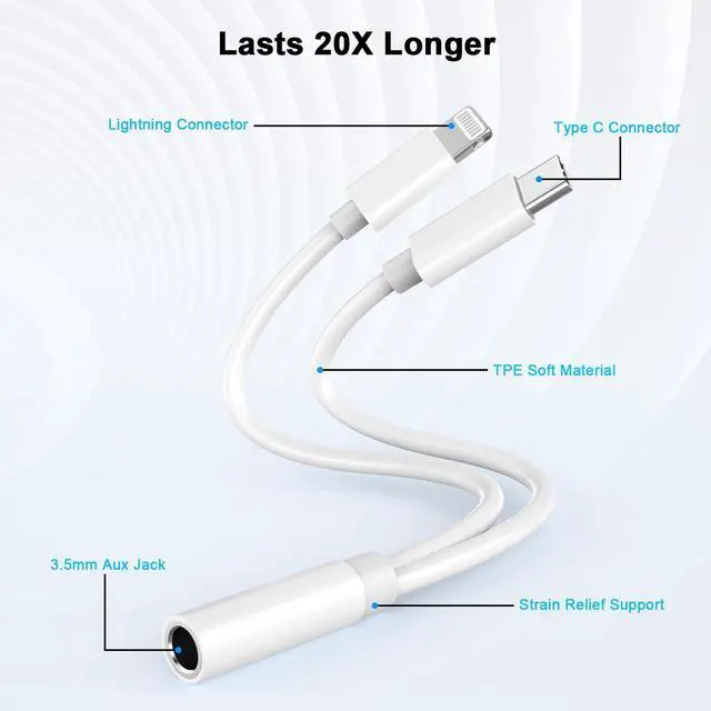 ![Alt view image 3 of 7 - iPhone Headphone Adapter, [Apple MFi Certified] 2-in-1 Lightning/USB Type C to 3.5 mm Headphone Jack Adapter, iPhone Aux Adapter Converter Dongle Audio Cable for iPhone 17 16 15 14 13 12 11 XS XR X 8](https://c1.neweggimages.com/productimage/nb640/C688D2604210S56BHCF.jpg)