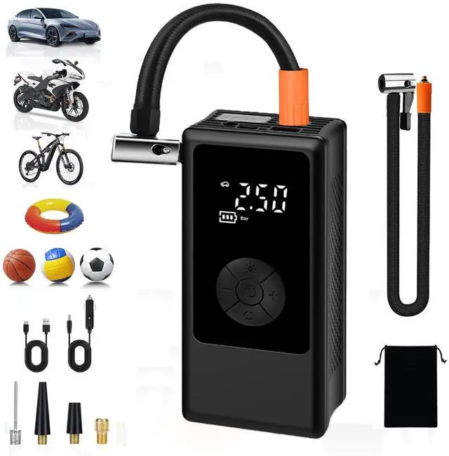 You can use the tire inflator to inflate most car tires, motorcycle, bike or balls. Weosz has packed all the necessary attachments.