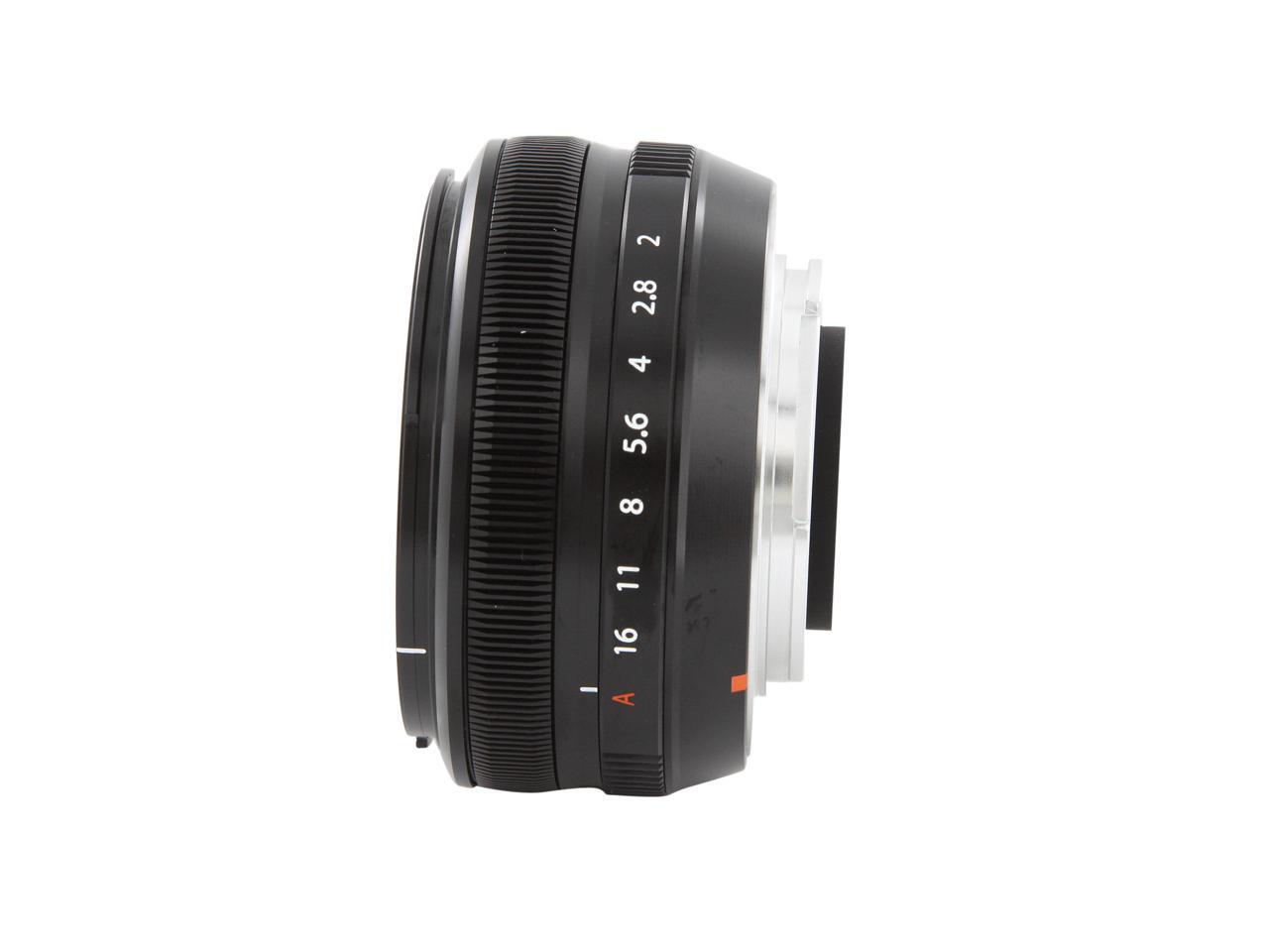 Designed specifically for the Fujifilm X-series of interchangeable lens cameras with APS-C sensors, the lightweight and compact XF18mmF2 R lens from FUJIFILM offers a 35mm equivalent 27mm focal length, perfect for wide angle perspective. The very fast, bright f/2.0 maximum aperture makes shooting in very low light possible, and provides pleasing bokeh (the out-of-focus portion of a photo) with its 7-blade aperture design. This lens also supports minimum aperture of f16. Aspheric and ED elements combat field curvature and chromatic aberration. This lens has a maximum magnification of 0.14x, and the aperture ring has 1/3-stop click stops for more precise exposures.