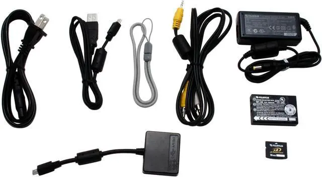 | Package Contents | Camera Body 16MB xD-Picture Card Terminal Adapter USB Cable AV Cable Wrist Strap Li-Ion battery NP-120 AC5VW Power Cable FinePix Viewer 5 ImageMixer VCD2 LE for FinePix |