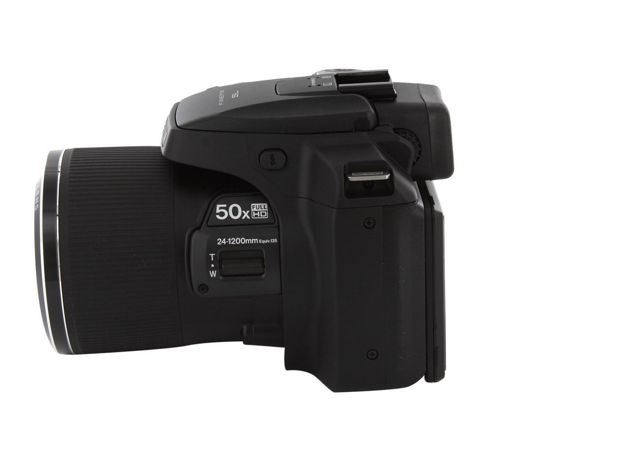 The Fujifilm FinePix SL1000 Digital Camera features a 16M BSI-CMOS sensor to produce high quality imagery with notable low-light sensitivity. A Fujinon 50x optical zoom lens expands the range of expressive possibilities. You can also enjoy the high speed performance, such as fast continuous shooting speed of 10fps at full resolution (max. 9 frames) and an auto focusing speed of 0.2 seconds. SR AUTO (Automatic Scene Recognition) can automatically determine the scene type you are working in, and choose from one of six pre-determined sets of exposure profiles to optimize your images. Six different Advanced Filters are also available to further enhance the look and feel of your photographs. Additionally, the 3.0" LCD monitor features a tilting design that enables easier viewing from both high and low angles.