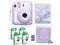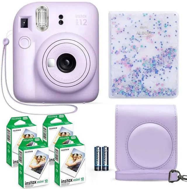 The instax mini 12 from Fujifilm has been updated for selfie shooters. Get photos instantly with the sleek, fun, and stylish Fujifilm Instax Mini 12 camera. With its automatic exposure function, there is no need to adjust a dial anymore to take photos based on your lighting. Just snap and shoot! Make your shot even more close and personal by extending the Mini 12's lens barrel to Selfie Mode that will allow you to get a close 11.8" to 19.7" focusing and use the built-in mirror on the front of the lens for perfectly composed selfies.. This Mini 12 bundle includes: Fujifilm Instax mini 12 Lilac Purple Camera Fujifilm Instax Mini Instant Film (40 Sheets) Lilac Purple Camera Case - Bag made with Vegan Leather Material Fujifilm Instax Mini Quicksand Beads print Photo Album 64 Pockets Matching camera strap 2 AA batteries