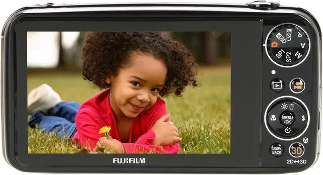 Expanded World of “View 3D”The large, bright 3.5" LCD screen features 1.15 million dots and an array of microscopic concave lenses to produce binocular disparity, displaying high-resolution, high-contrast 3D images and movies without the need for glasses. Fujifilm's unique 3D monitor also prevents on-screen flickering and crosstalk. Now you can enjoy 3D movies and photos on a 3D-ready TV or compatible PC using HDMI connection, print 3D images directly on to special lenticular sheets with Fujifilm's 3D printing system, or edit your 3D images using the included MyFinePix Studio software.