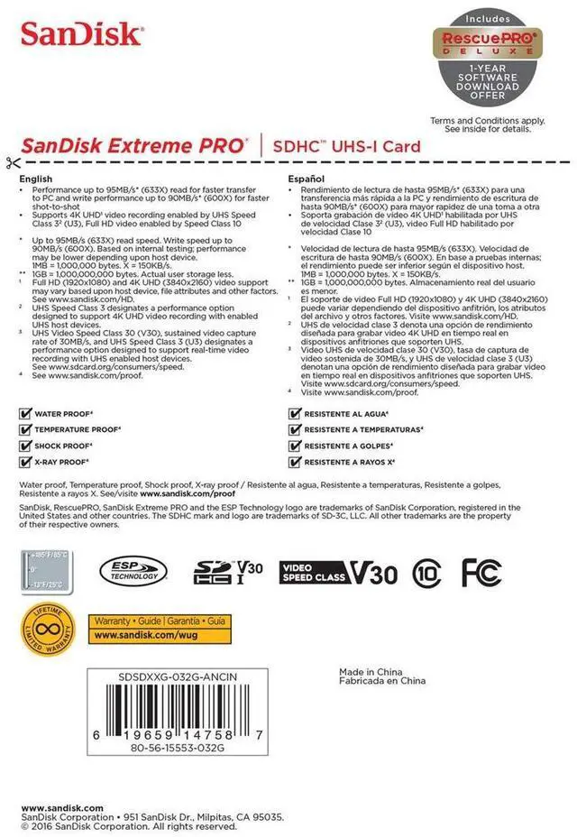 The powerful and high-capacity SD UHS-I memory card delivers maximum speed for performance, reliability, and uncompromising image and 4K Ultra HD video quality from your DSLR, advanced digital or HD video camera. Fast transfer speeds move your data fast for efficient post-production workflow.