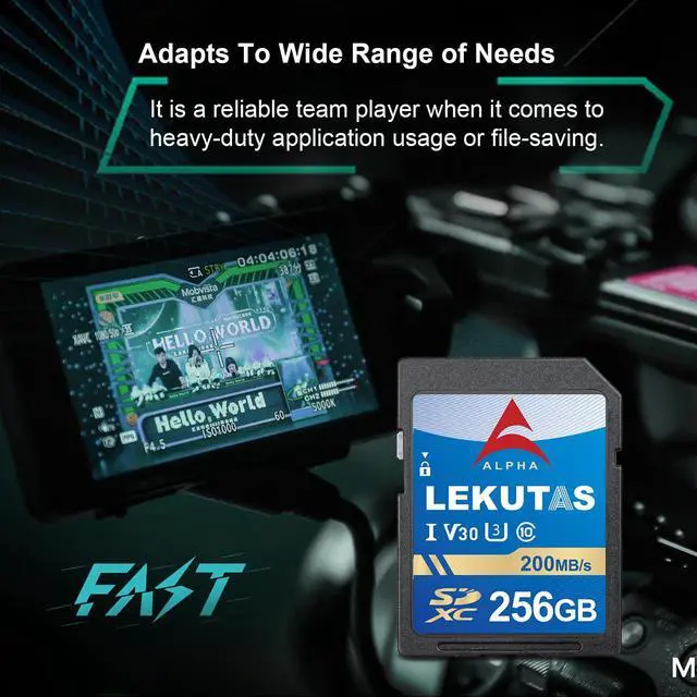 LEKUTAS 256GB SDXC UHS-I Memory Card - Up to 200MB/s Read Speed, C10, U3, V30, 4K UHD, Full-HD & 4K Video SD Card for Canon Nikon Sony Fujifilm DSLR Cameras or Mirrorless Cameras